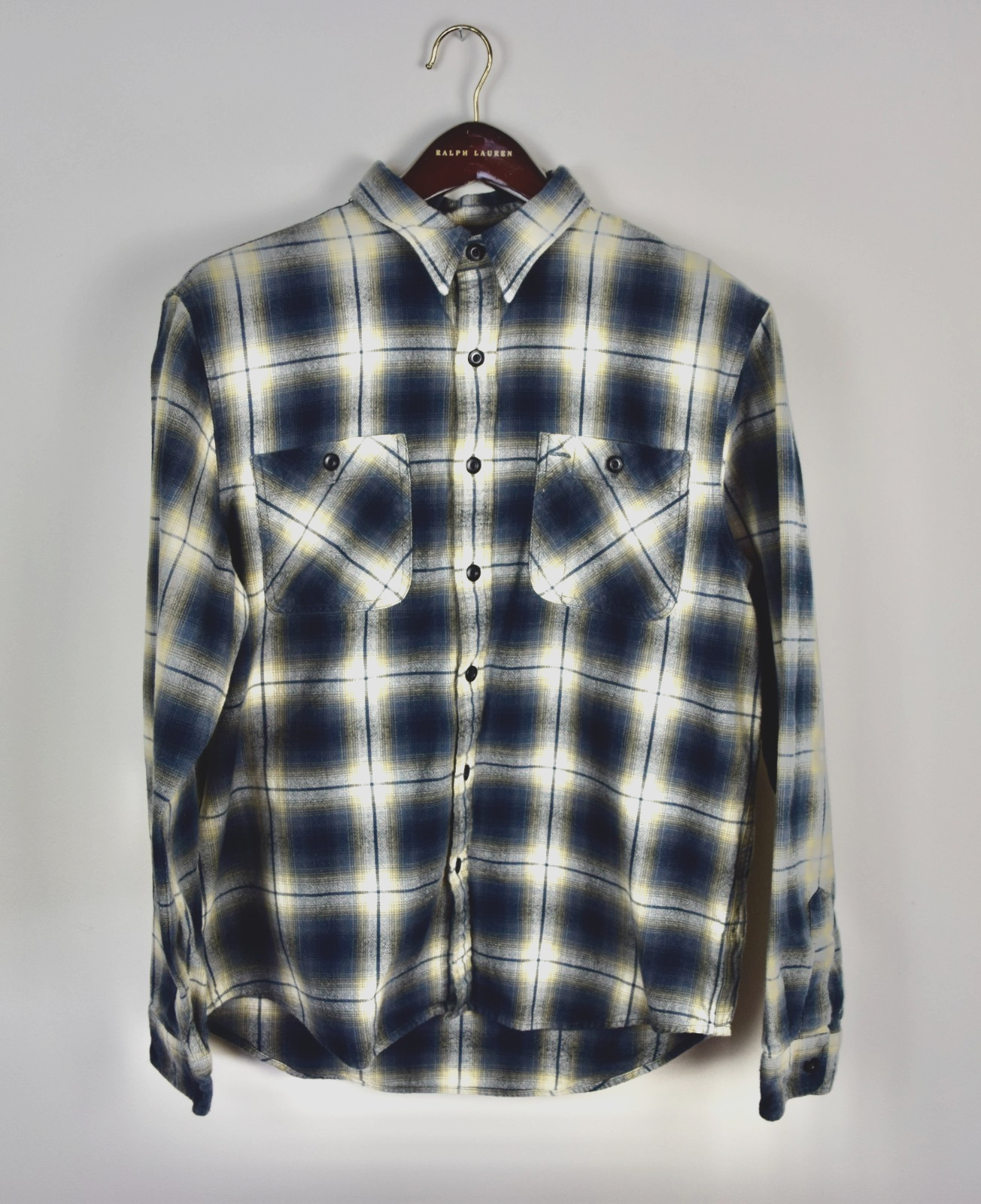 RRL Ralph Lauren Blue Check Shadow Plaid Workshirt Mens Shirt L/S Large L