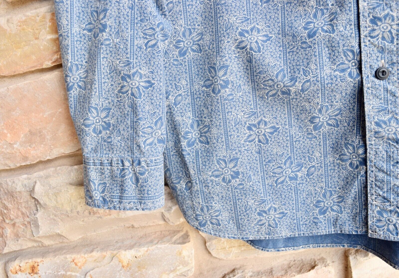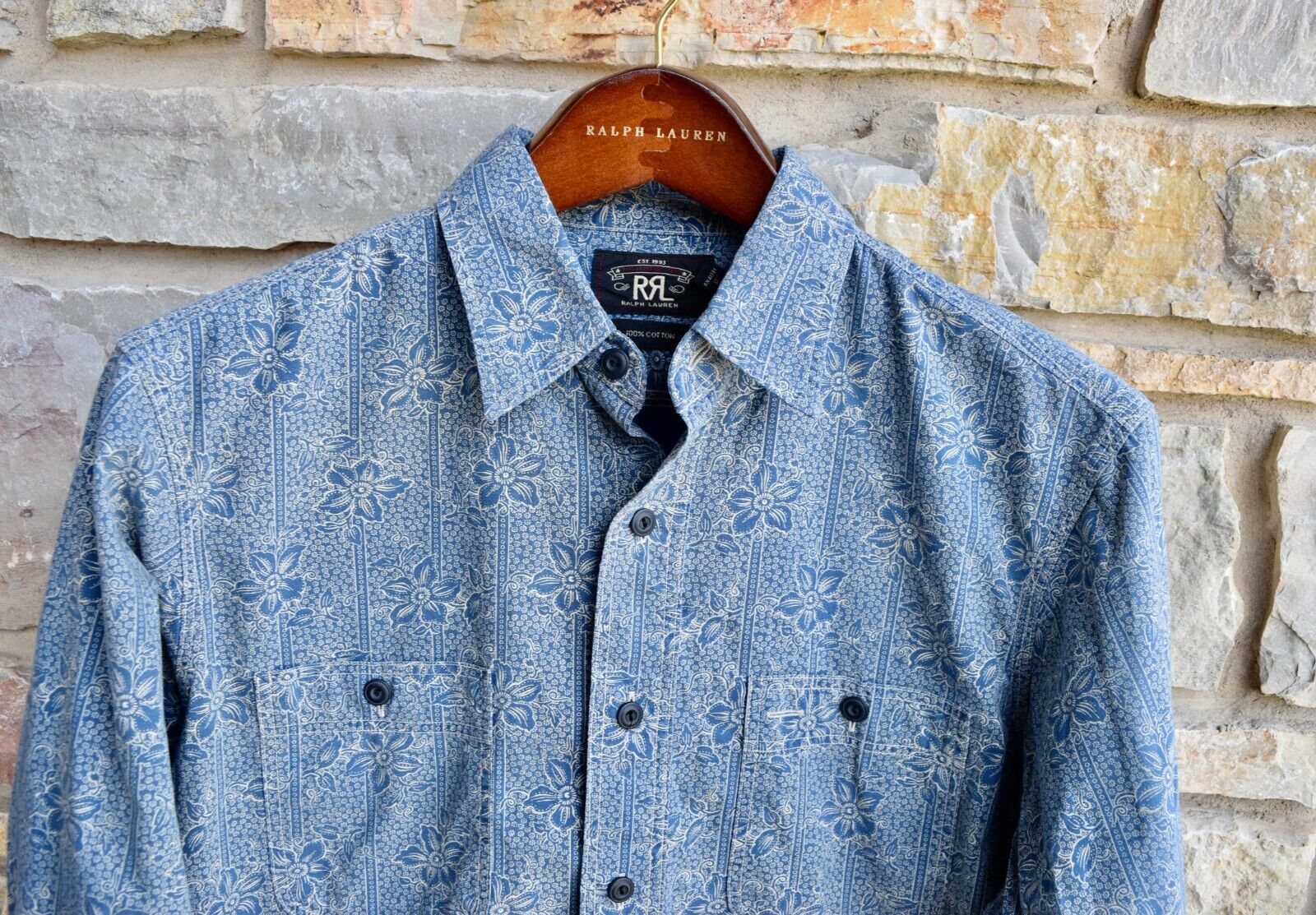 RRL Ralph Lauren Blue Floral Print Bandanna Shirt Workshirt Men's Medium M