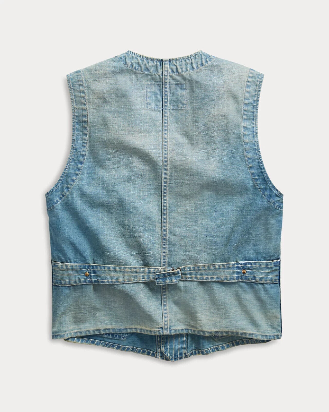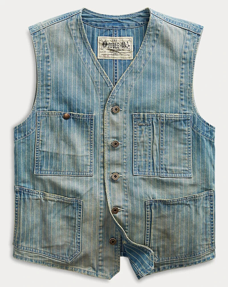RRL Ralph Lauren Blue Indigo Denim Striped Twill Vest Men's Large L