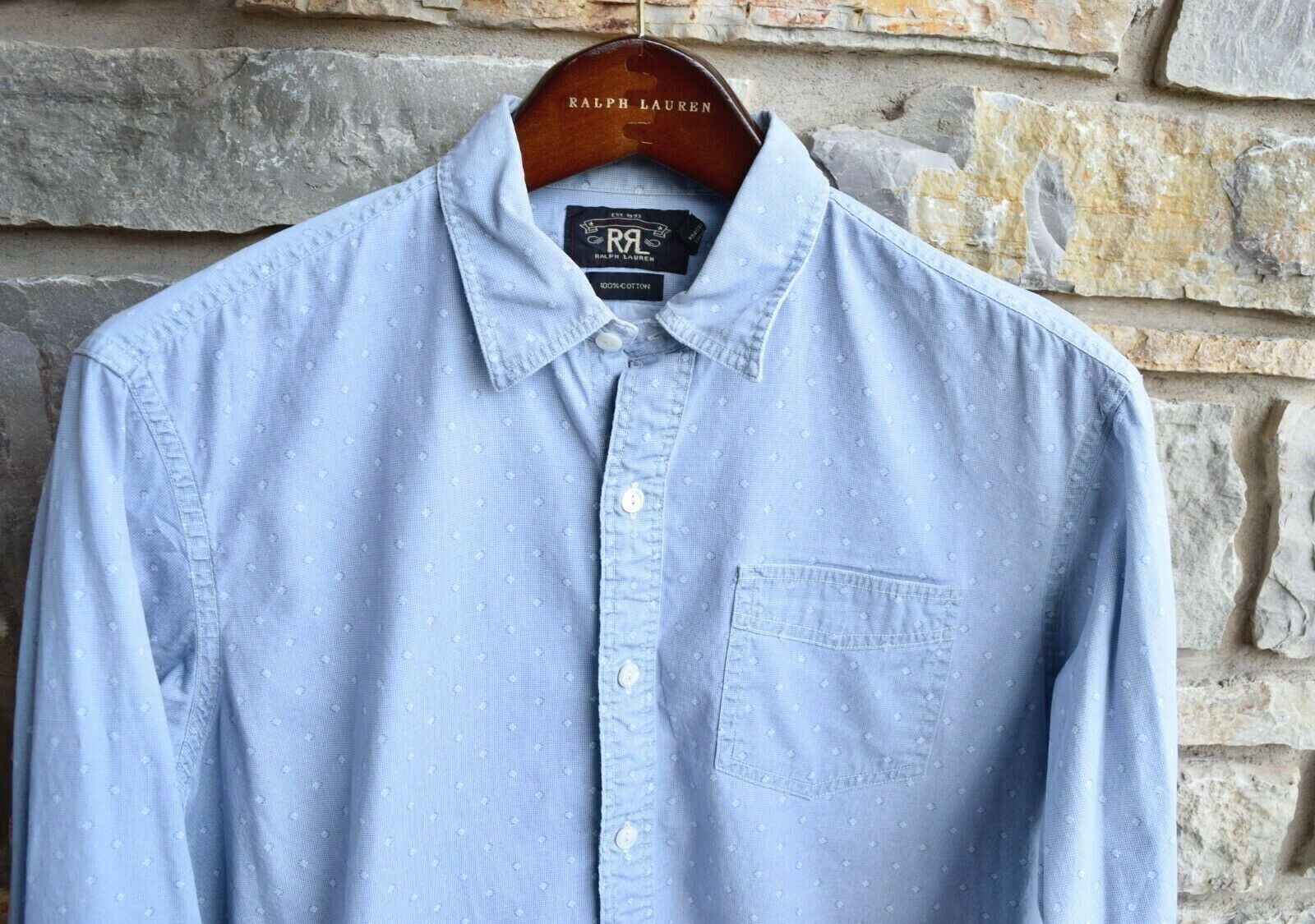 RRL Ralph Lauren Blue Shirt Cotton Button Polka Dot Shirt Fit Men's Medium M