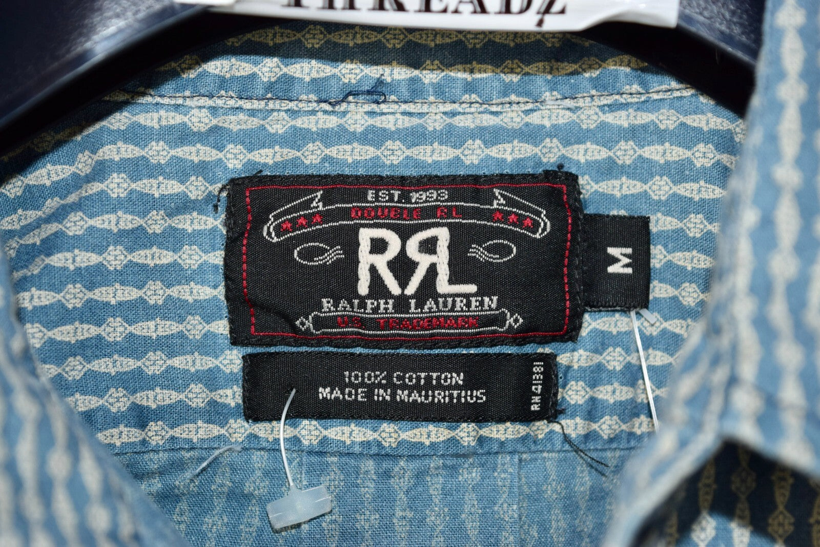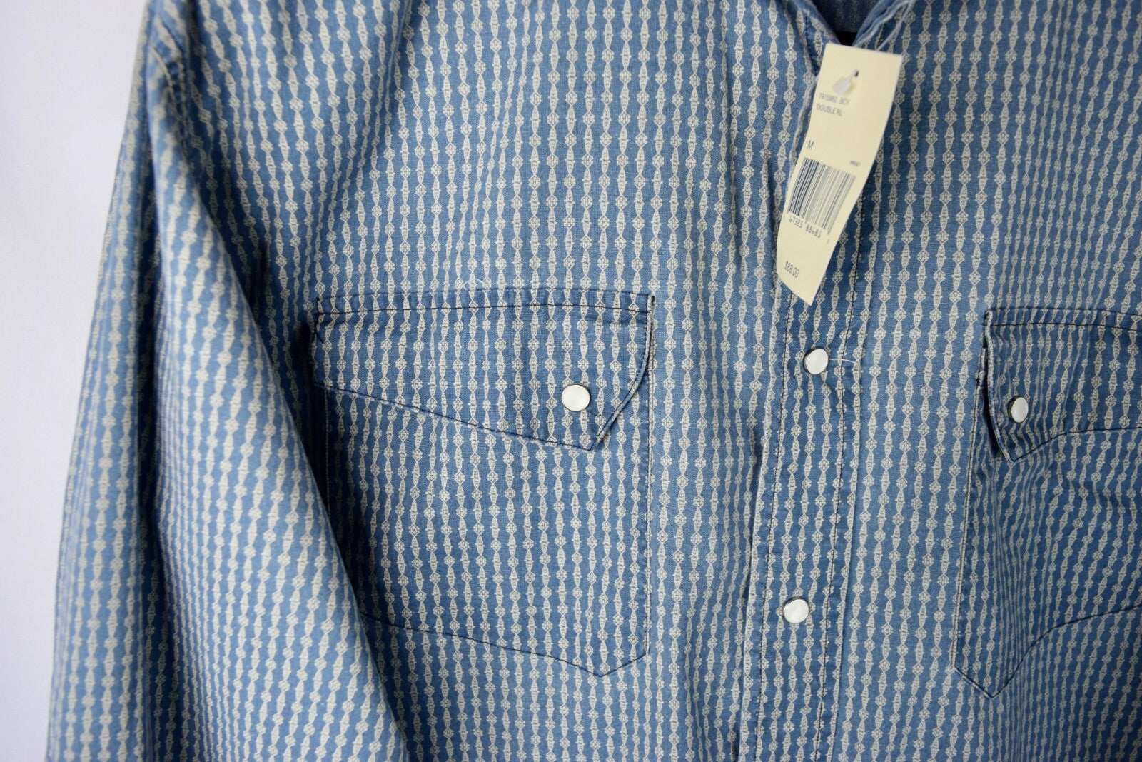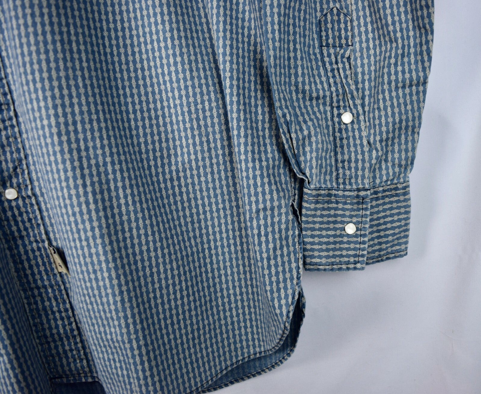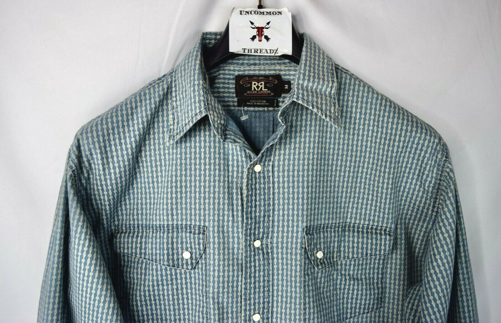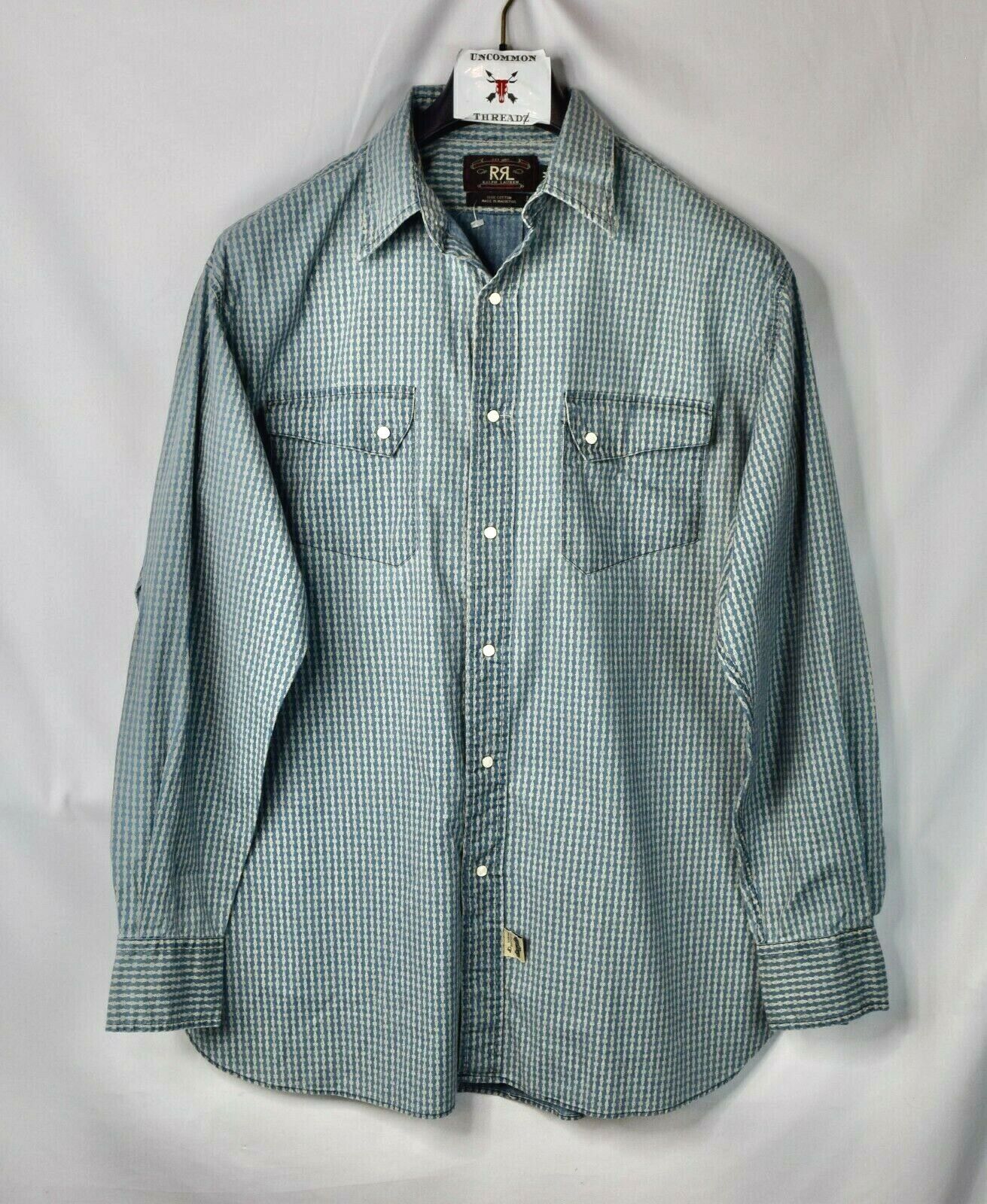 RRL Ralph Lauren Blue Snap Work Shirt Men's M Medium Western Wide Relaxed Fit