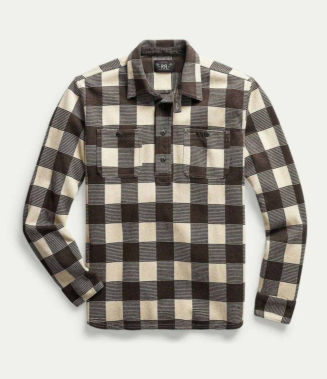 RRL Ralph Lauren Cotton Wool Plaid Shirt Brown Workshirt Popover Men's Small S