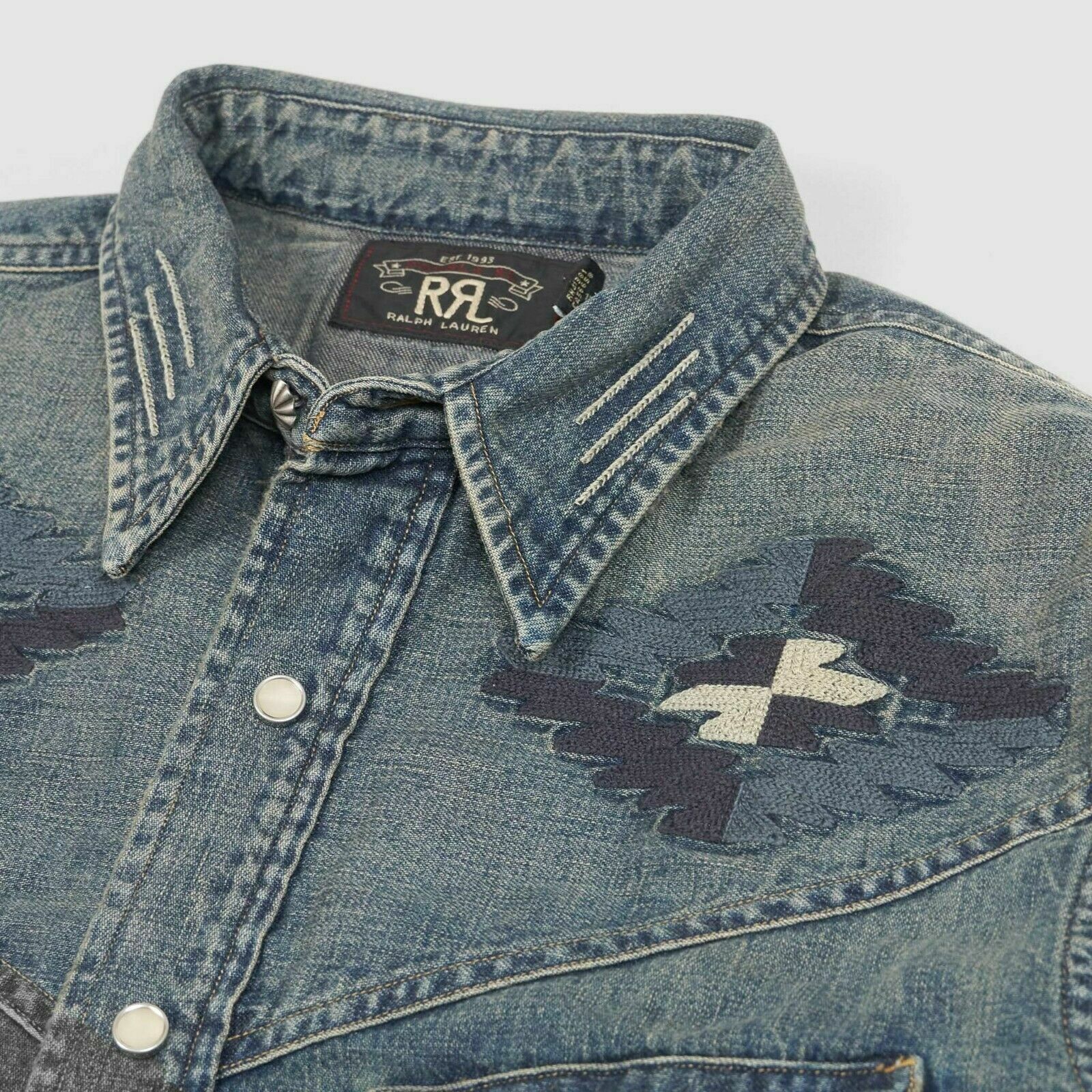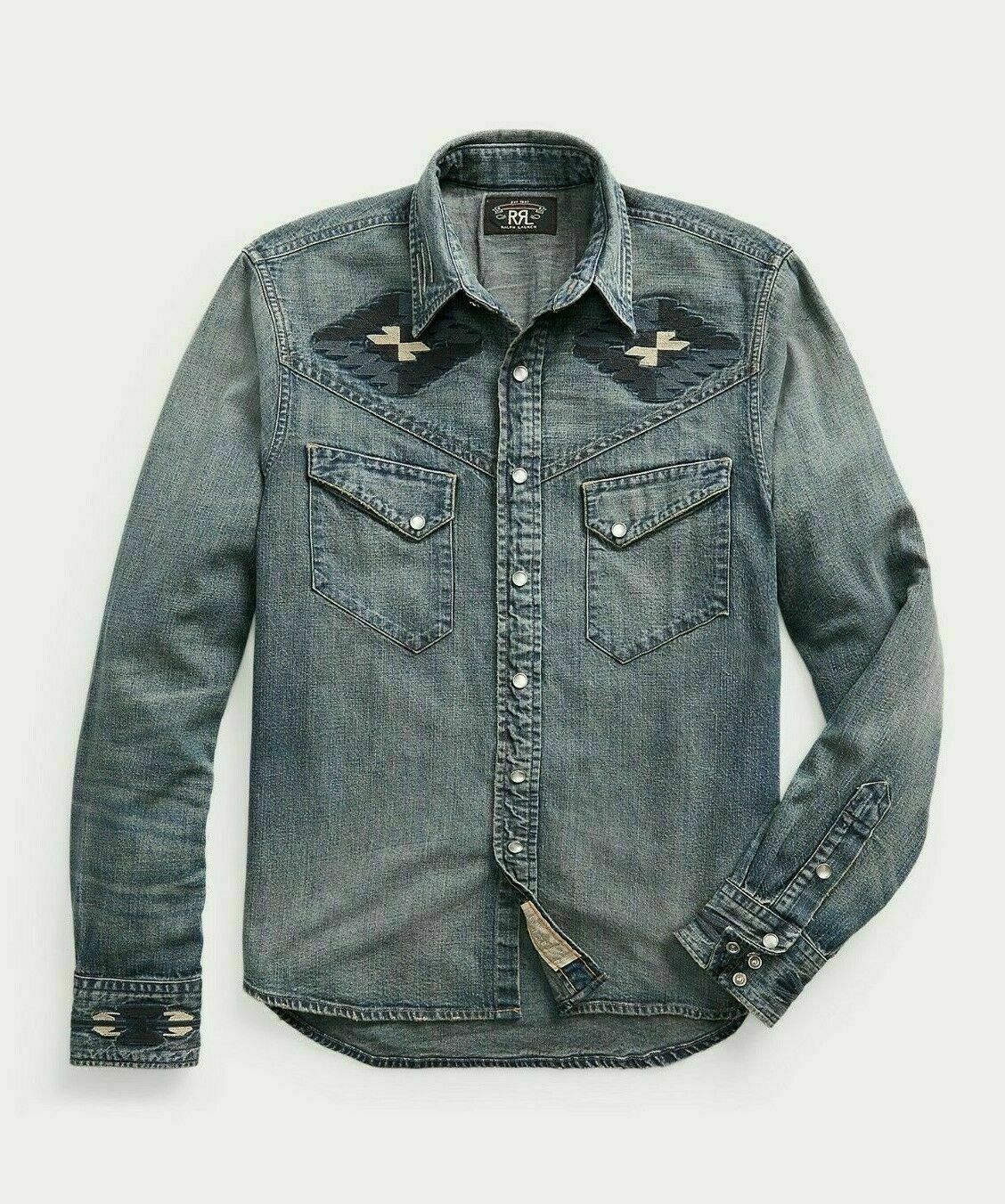 RRL Ralph Lauren Embroidered Japanese Denim Western Shirt Men's M Medium