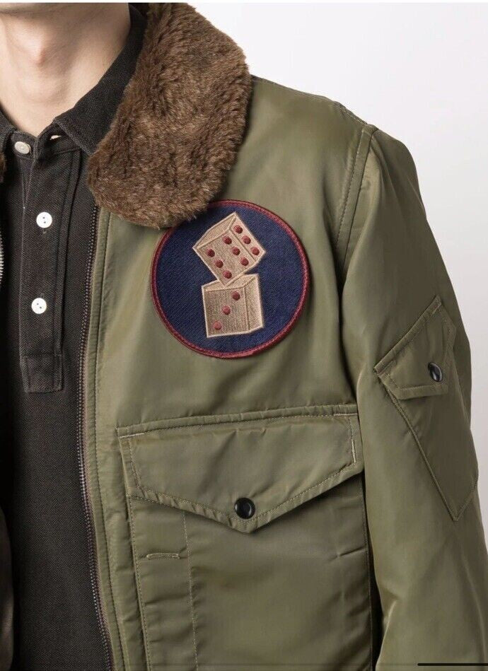 RRL Ralph Lauren Faux Shearling Collar Flight Bomber Jacket Dice Size Large L