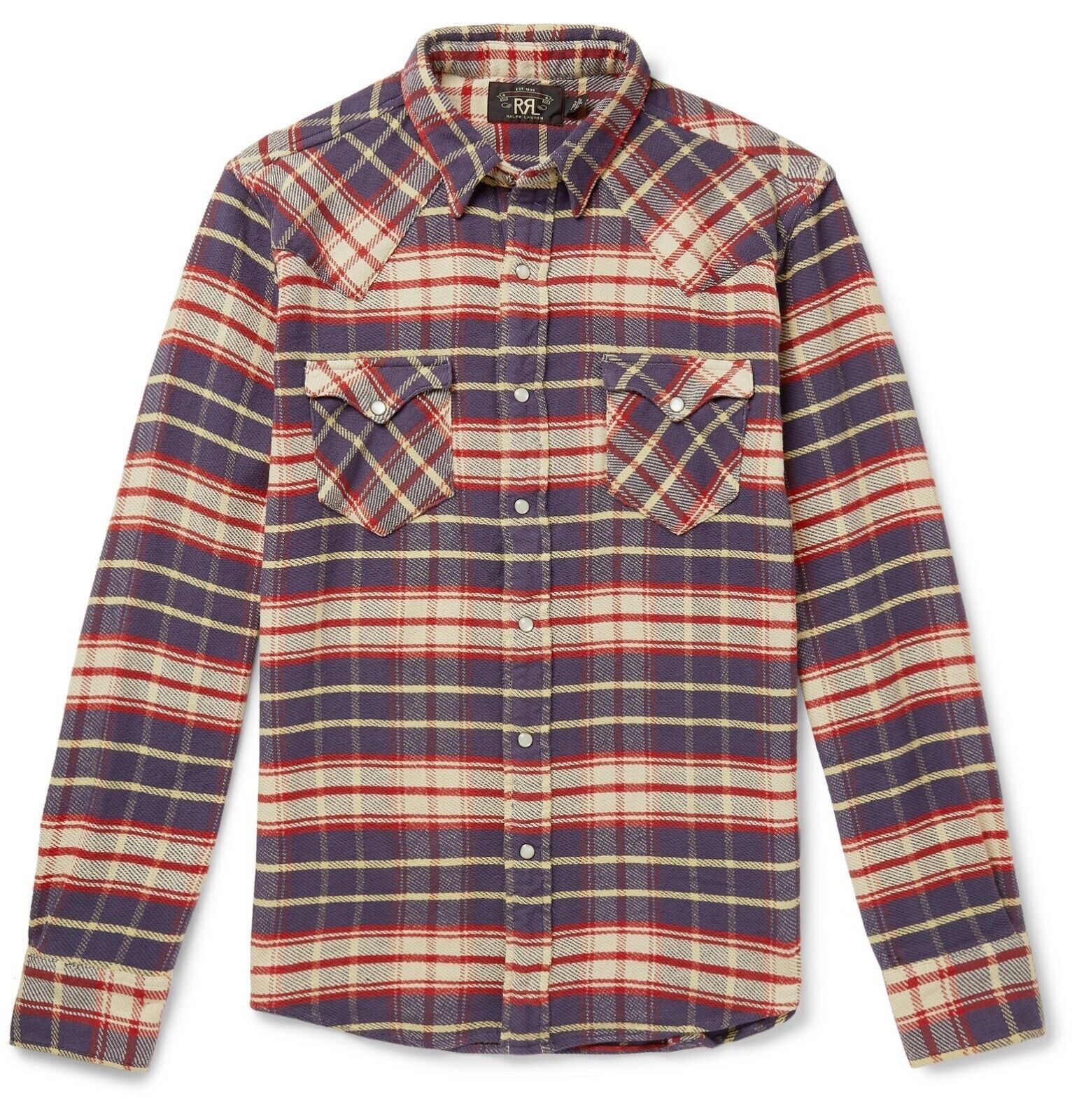 RRL Ralph Lauren Fit Plaid Twill Western Shirt Multi-Color Men's Extra-Large XL