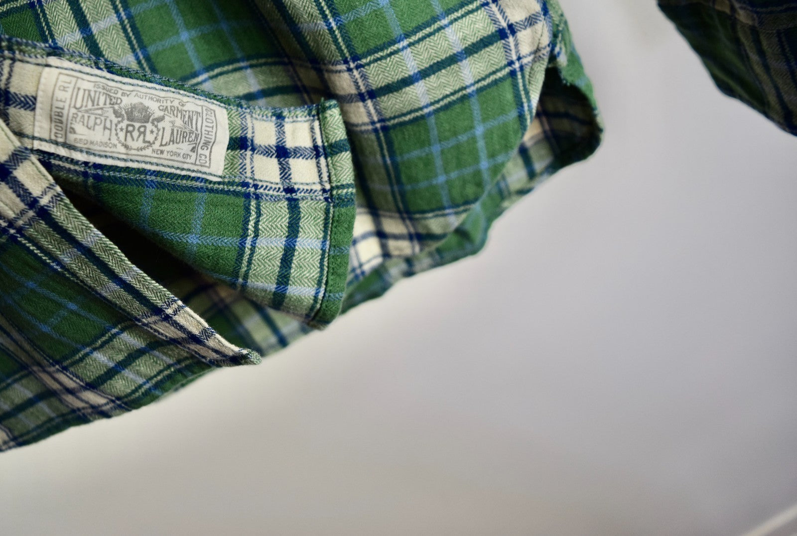 RRL Ralph Lauren Green White Check Plaid Workshirt Mens Shirt L/S Extra-Large XL