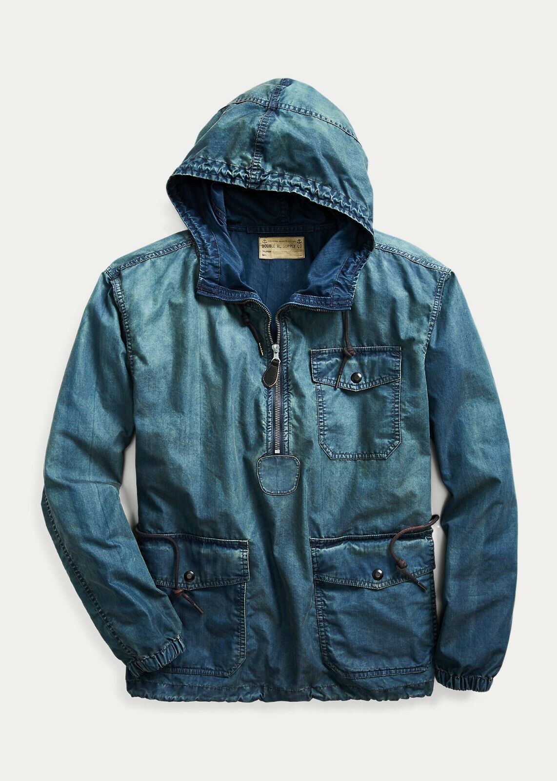 RRL Ralph Lauren Indigo Blue Jacket Popover 1/2 Zip Windbreaker Men's 2XL XXL