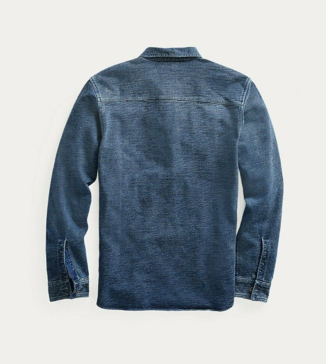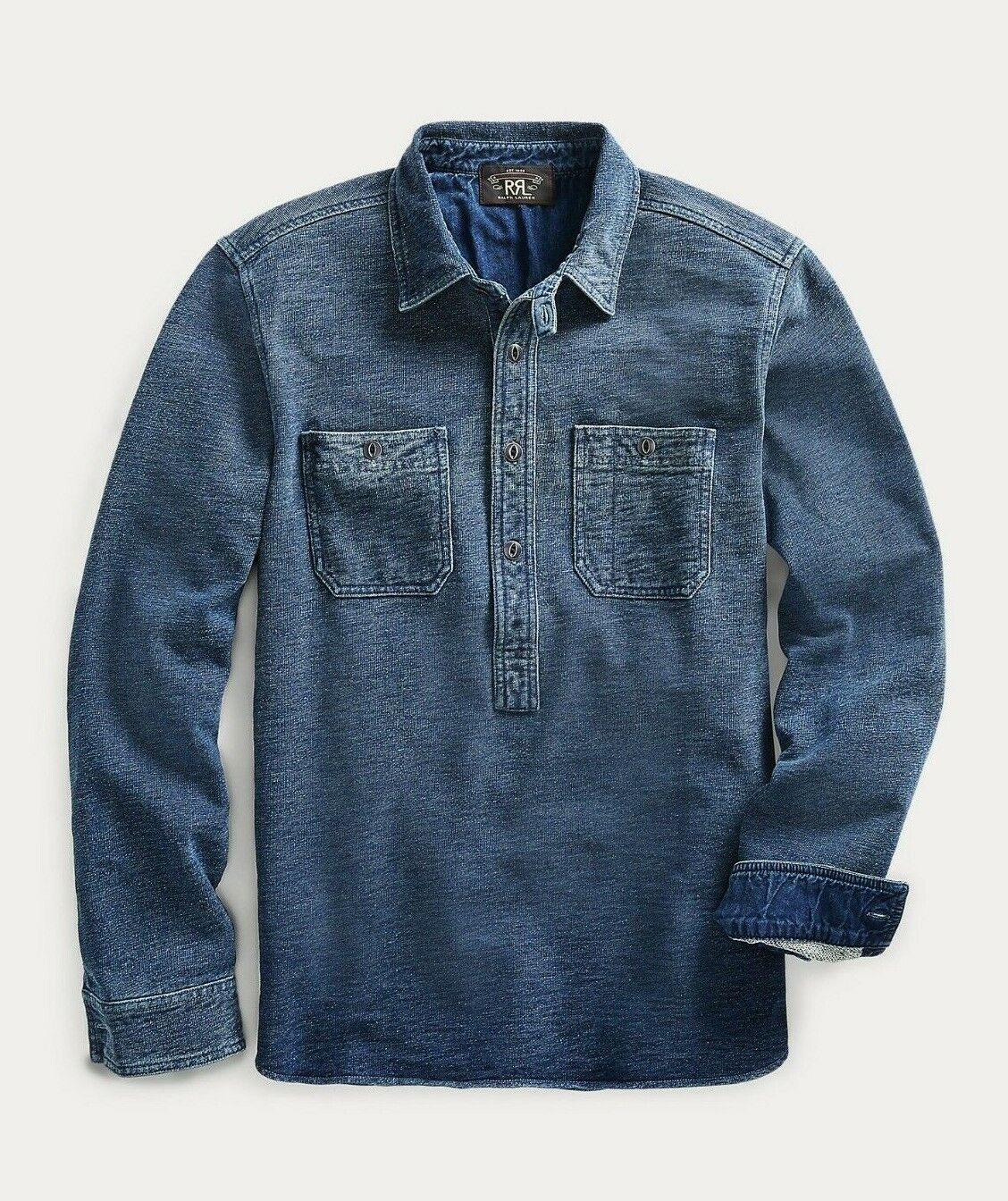 RRL Ralph Lauren Indigo Blue Solid Workshirt Indigo Popover Men's Medium M