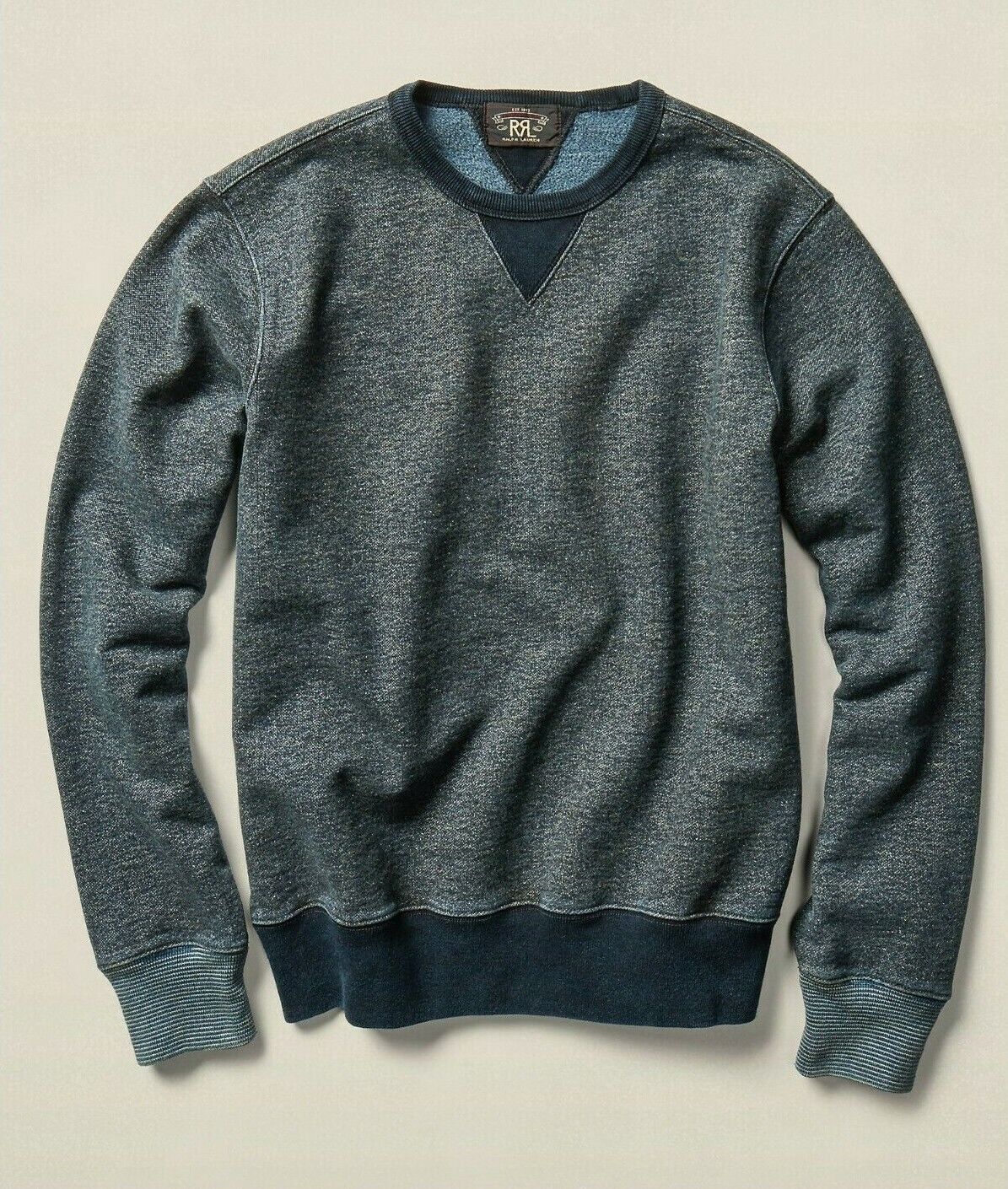 RRL Ralph Lauren Indigo Crewneck Blue Fleece Pullover Sweatshirt Men's Small S