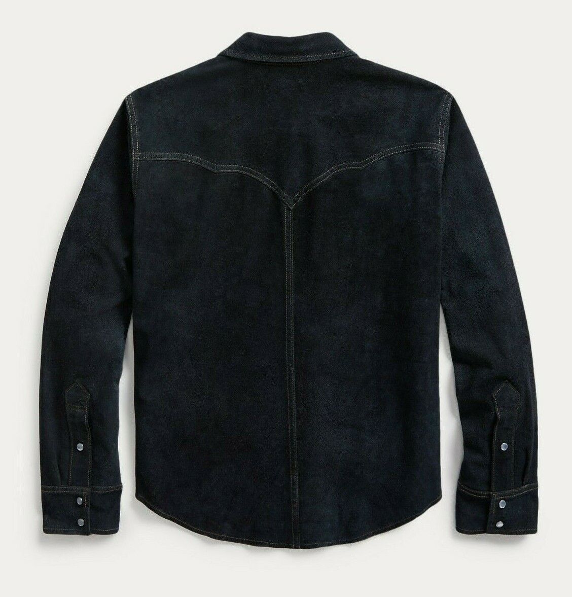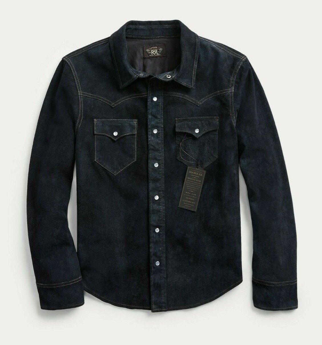 RRL Ralph Lauren Indigo Suede Western Leather Jacket Overshirt XL Extra-Large