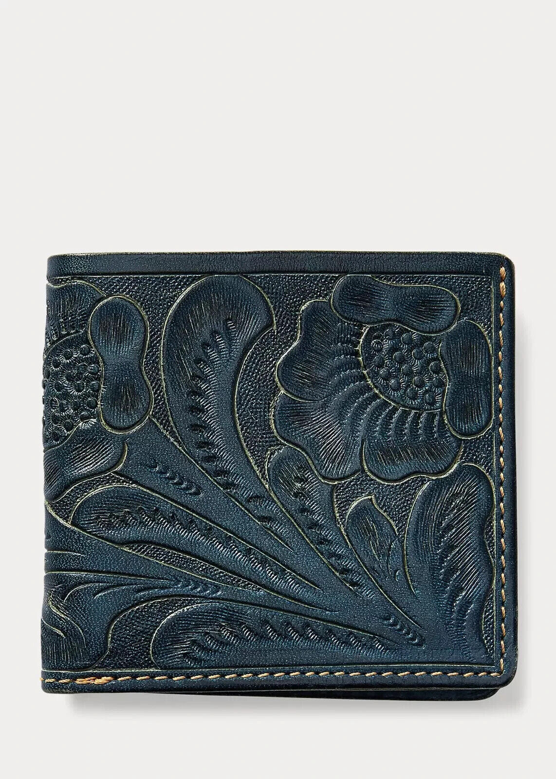 RRL Ralph Lauren Indigo Vegetable Tanned Cowhide Hand Tooled Wallet