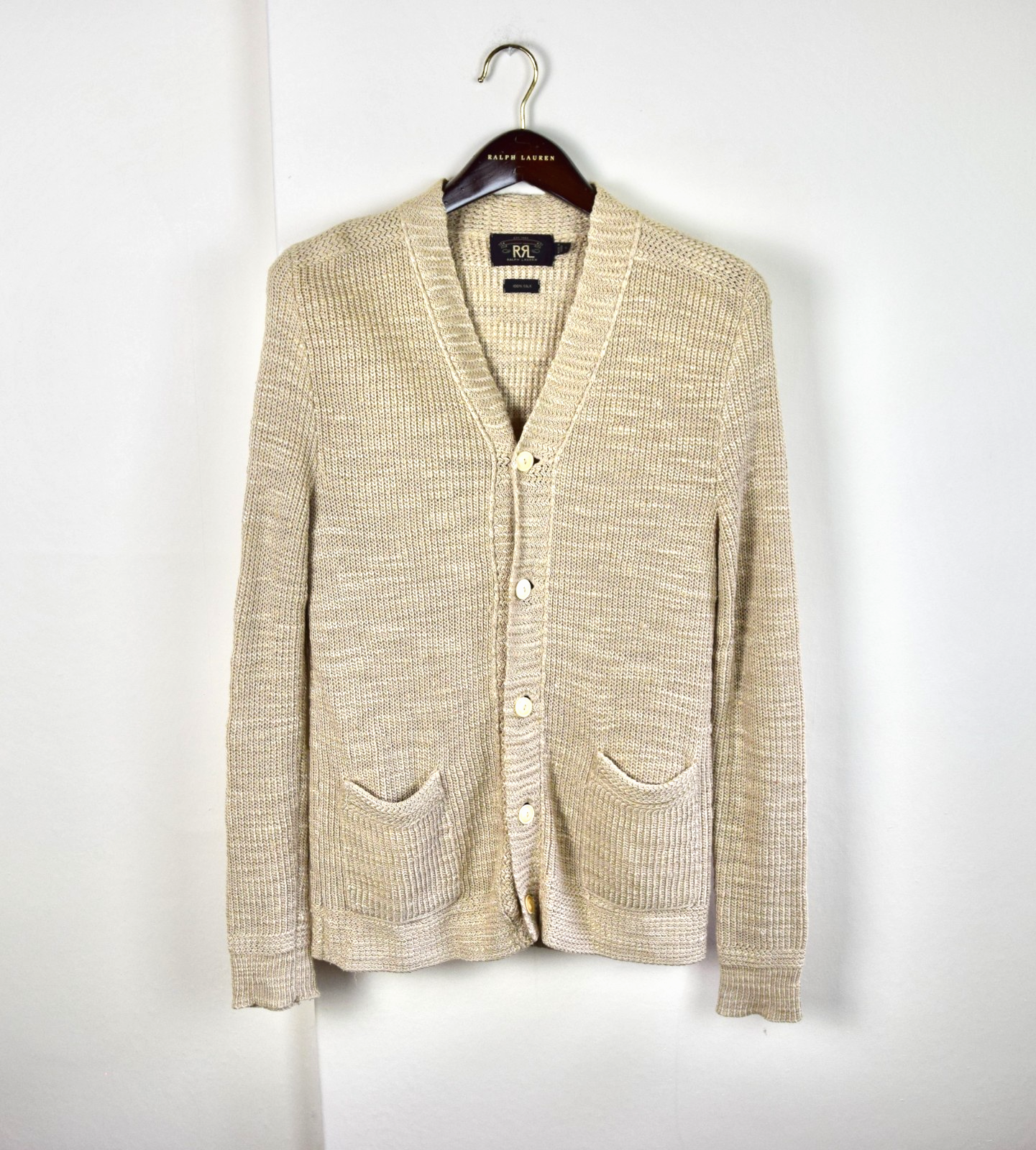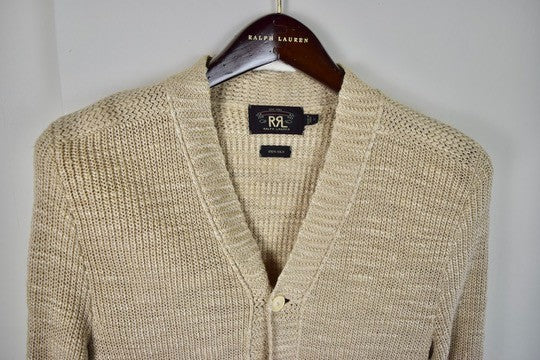 RRL Ralph Lauren Mens Cream 100% Silk Cardigan Shawl Sweater Men's Small S