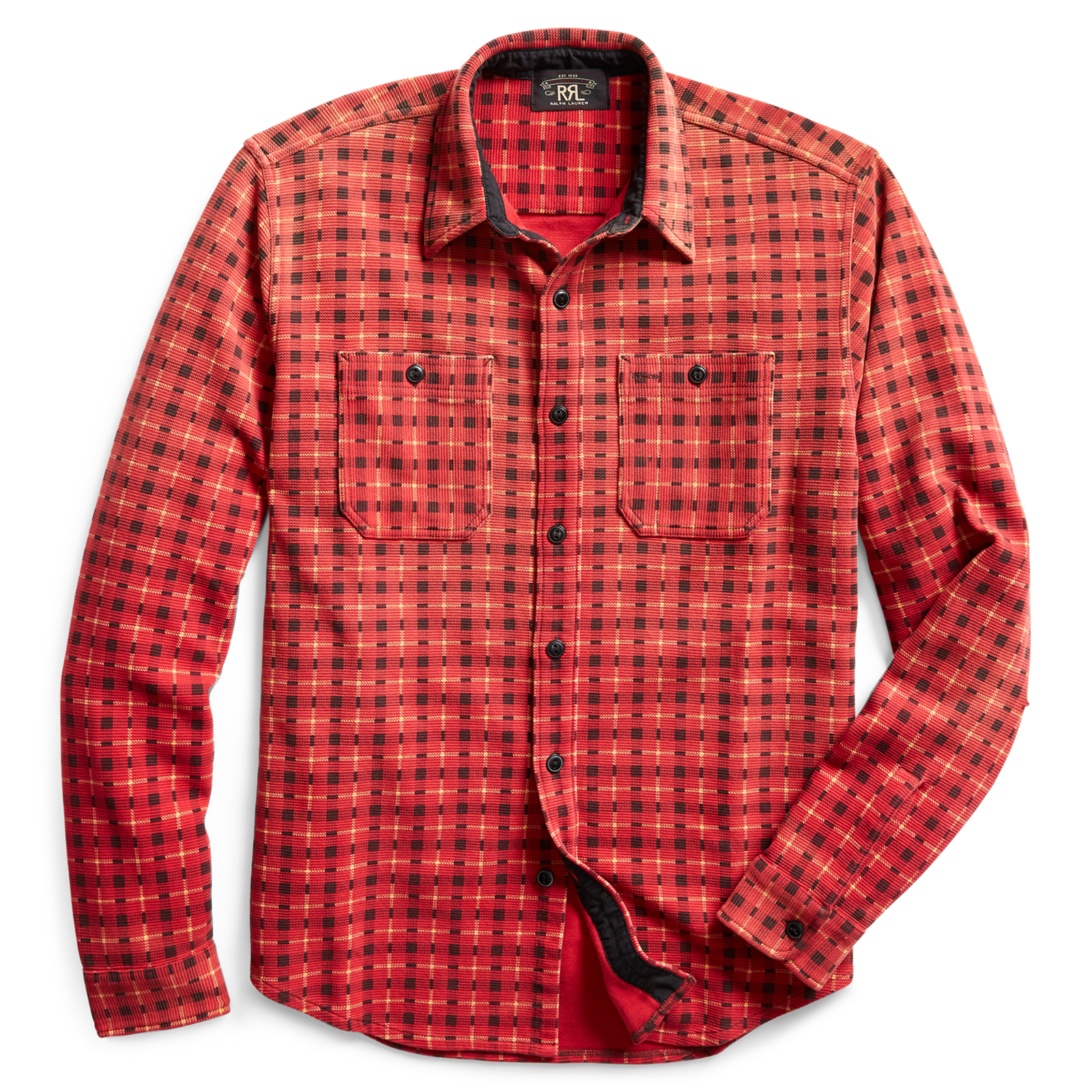 RRL Ralph Lauren Ottoman Red Cotton Plaid Print Work Shirt Men's Extra-Large XL