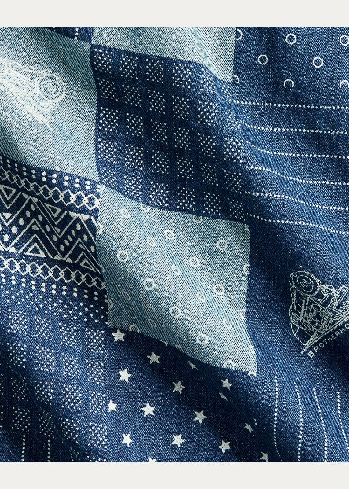 RRL Ralph Lauren Patchwork Print Indigo Blue Workshirt Shirt Mens Extra-Large XL
