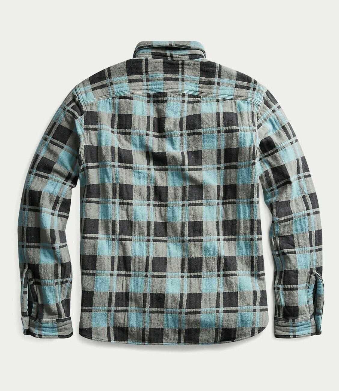 RRL Ralph Lauren Plaid Distressed Blue Jacquard Check Workshirt Men's Medium M