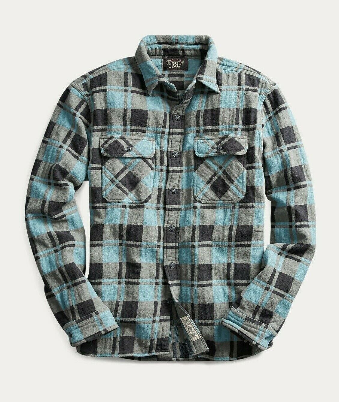 RRL Ralph Lauren Plaid Distressed Thick Jacquard Check Workshirt Men's Medium M