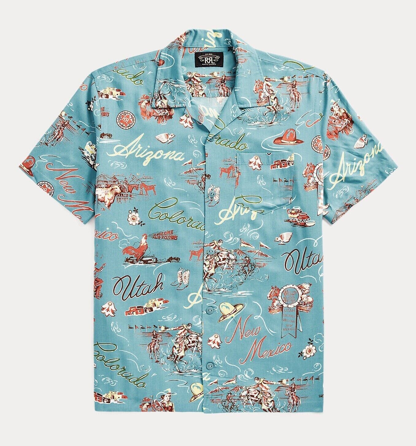 RRL Ralph Lauren Western Print Camp Blue Rodeo Shirt S/S Men's Extra-Large XL