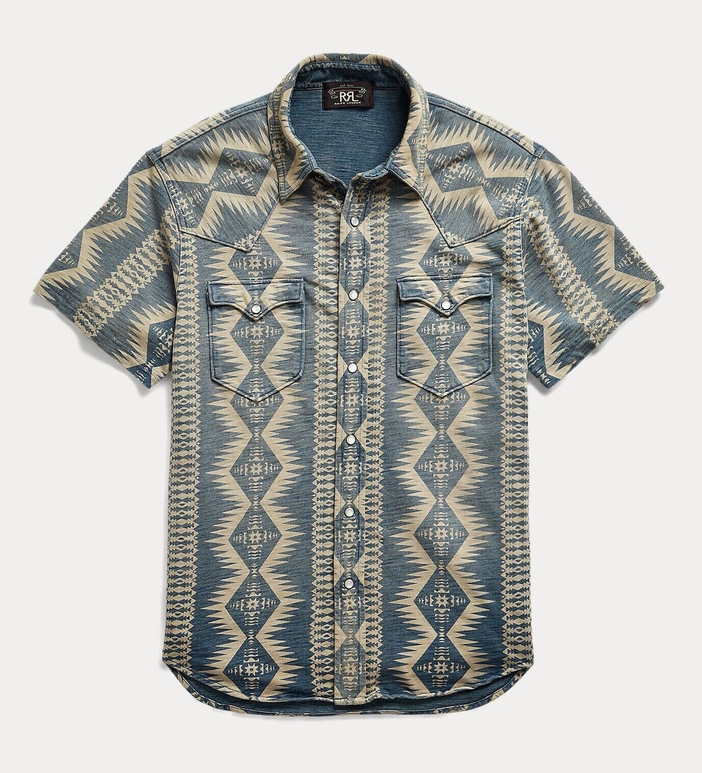 RRL Ralph Lauren Western Snap Southwestern S/S Camp Shirt Men's Extra-Large XL