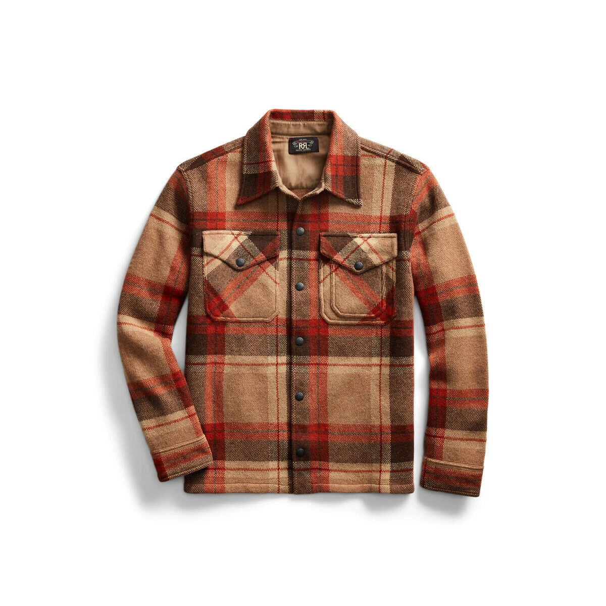 RRL Ralph Lauren Wool Cashmere Shirt Sweater Workshirt Orange Tan Men's Medium M