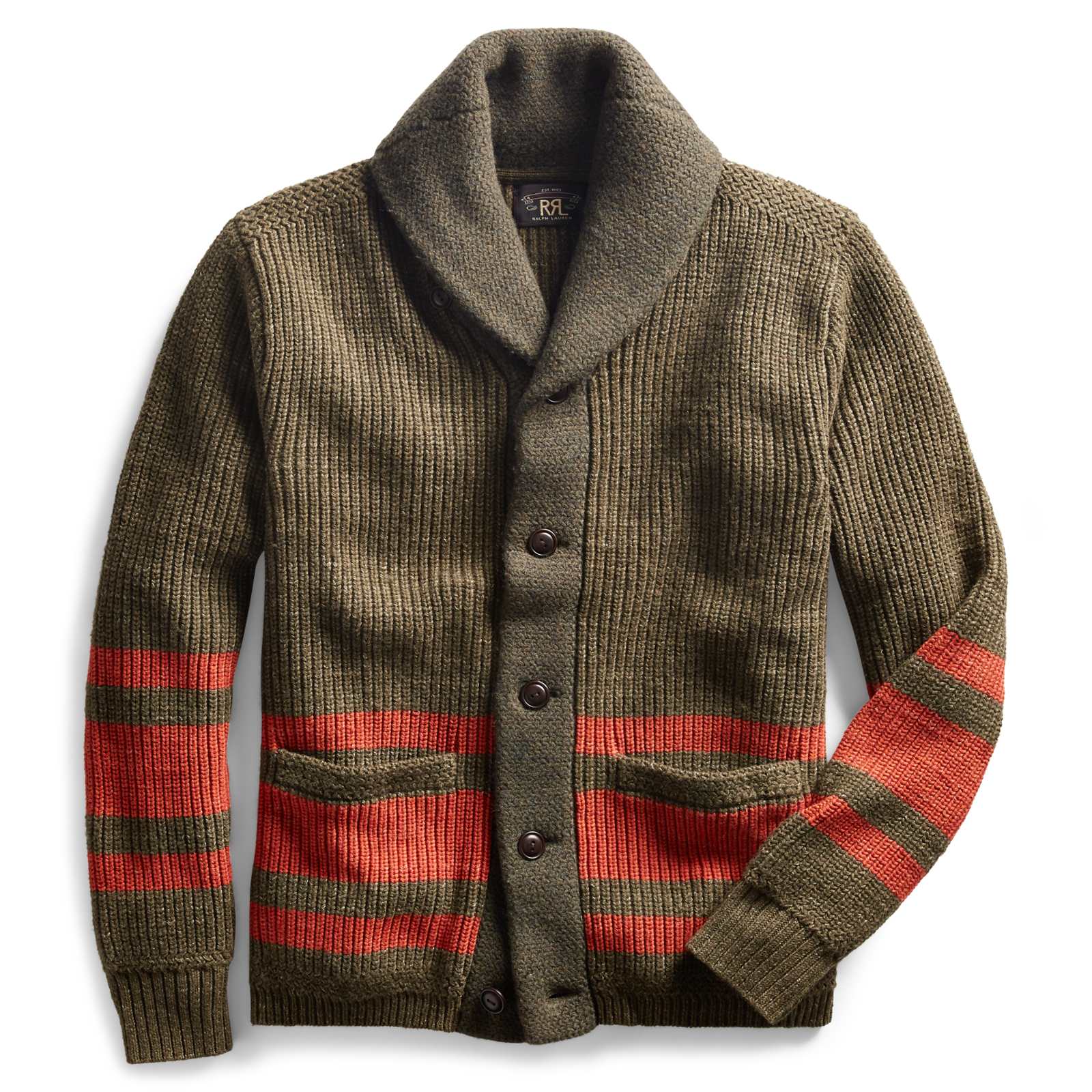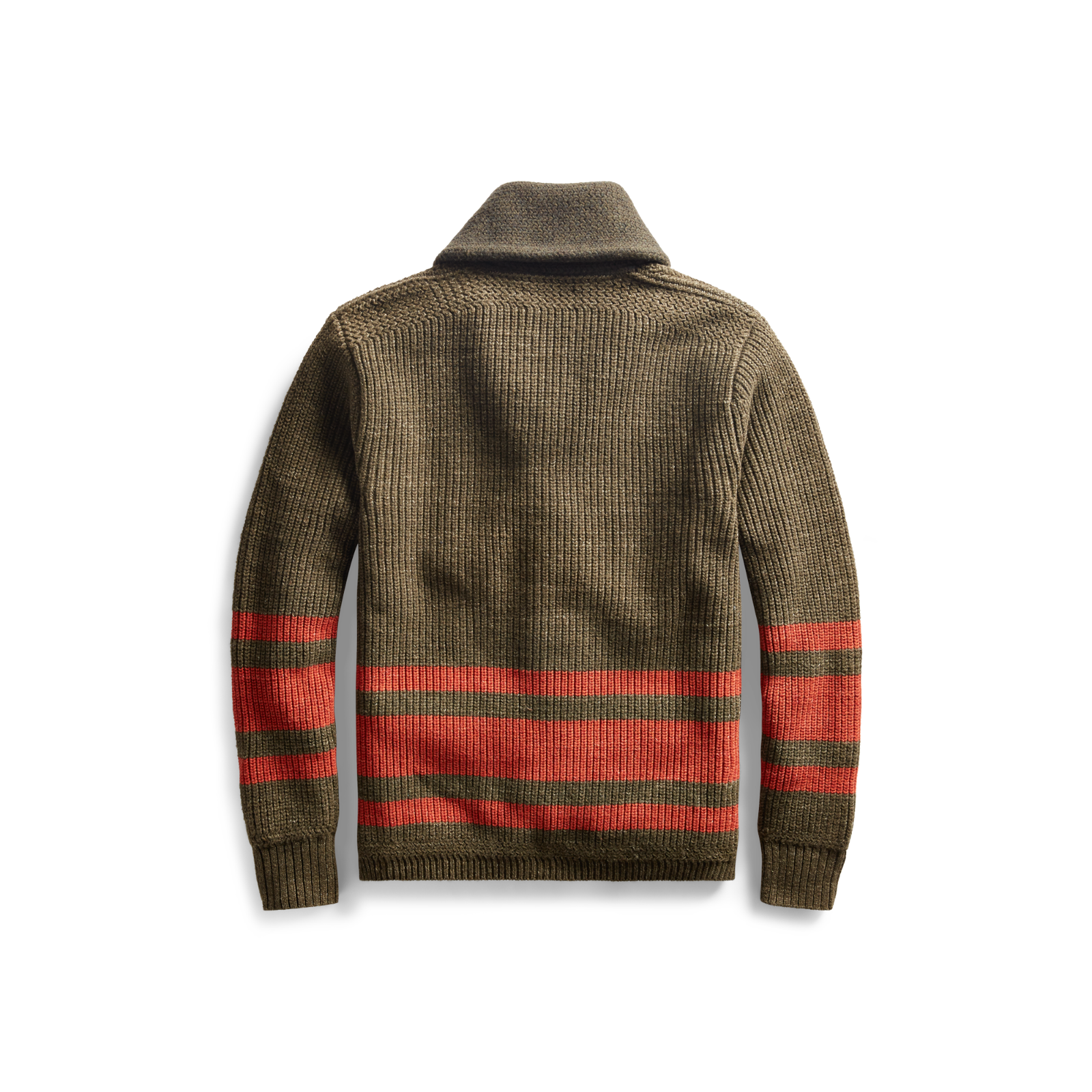 New RRL Ralph Lauren Wool Green Olive Shawl Varsity Striped Cardigan S Small