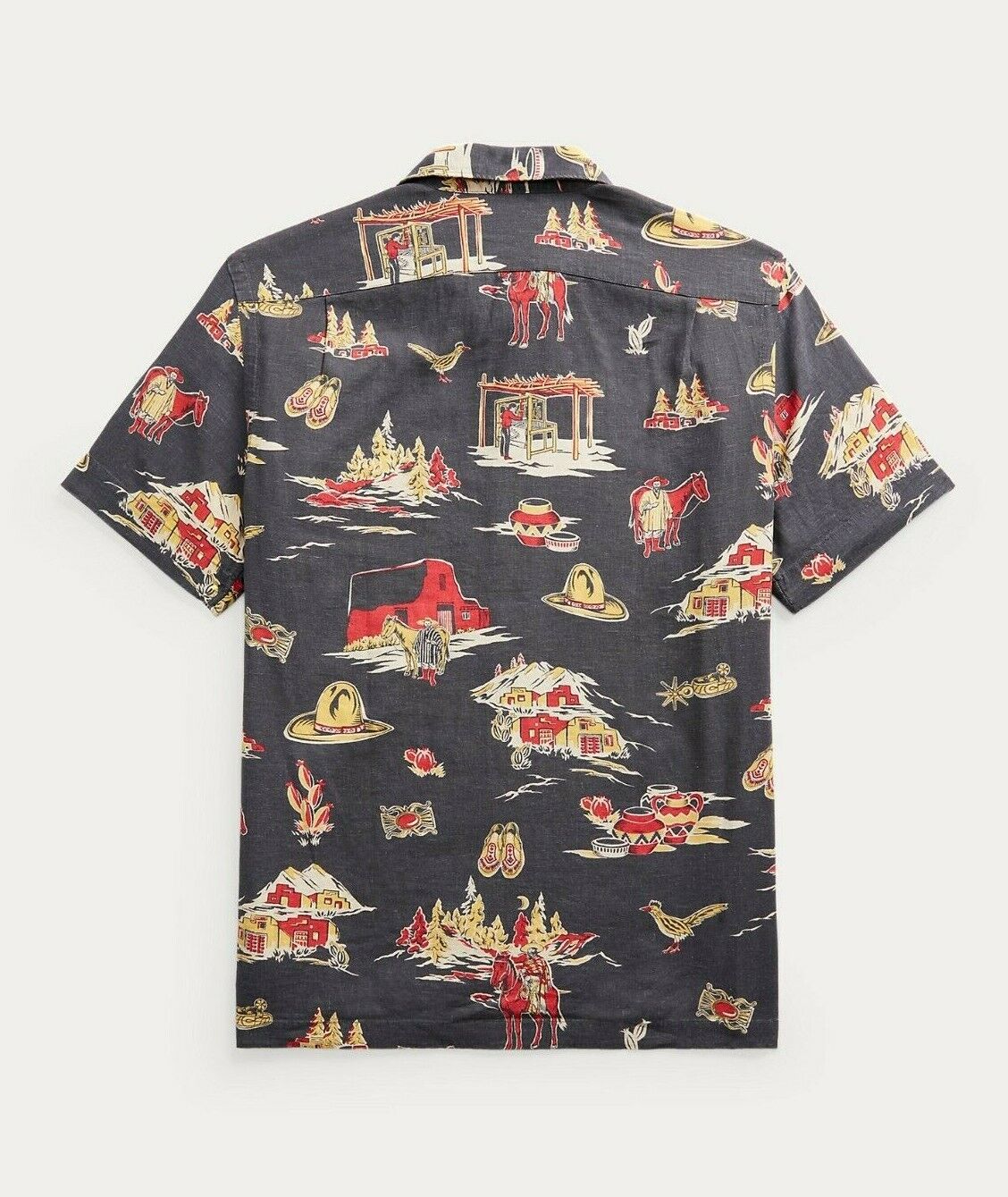 RRL Ralph Lauren 1940s Vintage Western Scenic Print Linen Shirt Men's Small S