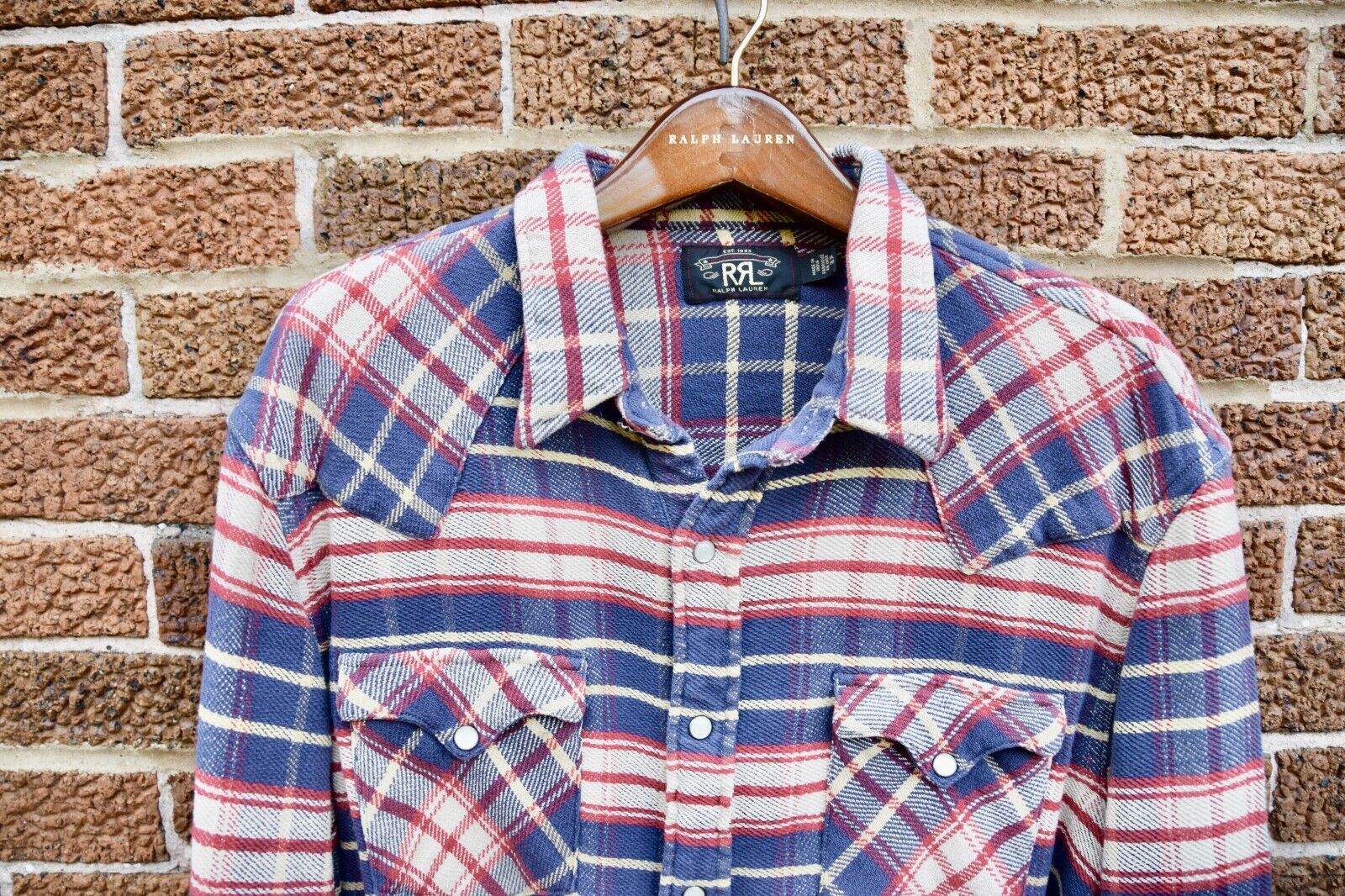 RRL Ralph Lauren Fit Plaid Twill Western Shirt Multi-Color Men's Medium M