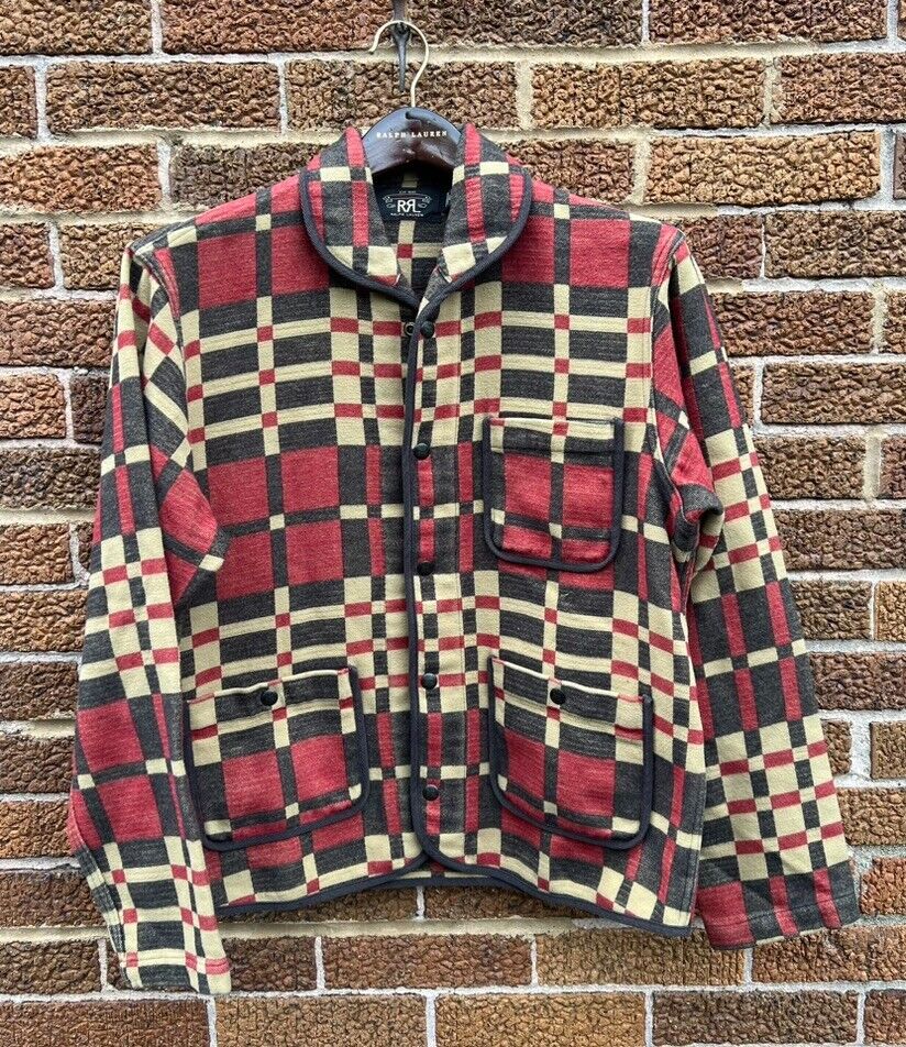 RRL Ralph Lauren Plaid Horse Blanket Red Button Coat Jacket Men's Medium M