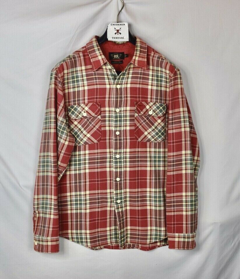 RRL Ralph Lauren Plaid Red Nylon Lined Workshirt Men's XL Extra-Large Flannel