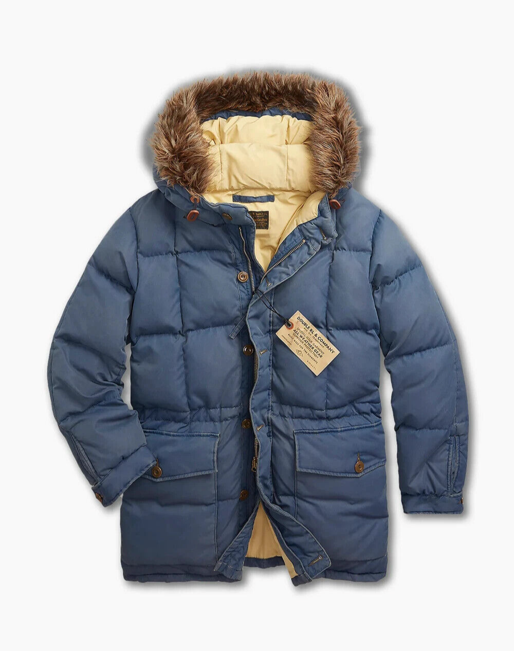 RRL Ralph Lauren Quilted 1950's Blue Parka Jacket Coat Fur Mens Large L