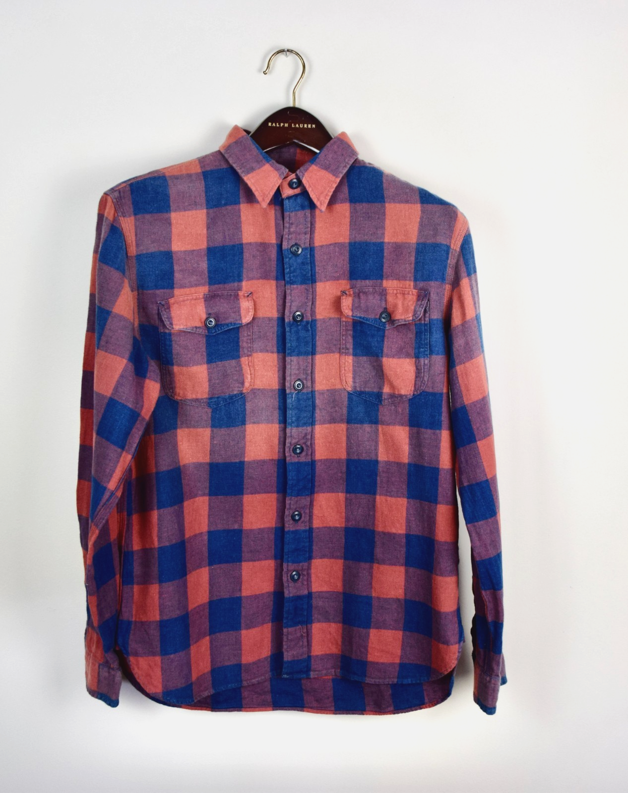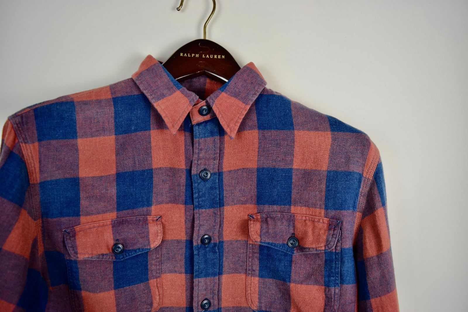 RRL Ralph Lauren Red Blue Check Plaid Workshirt Rare Men's Shirt L/S Medium M