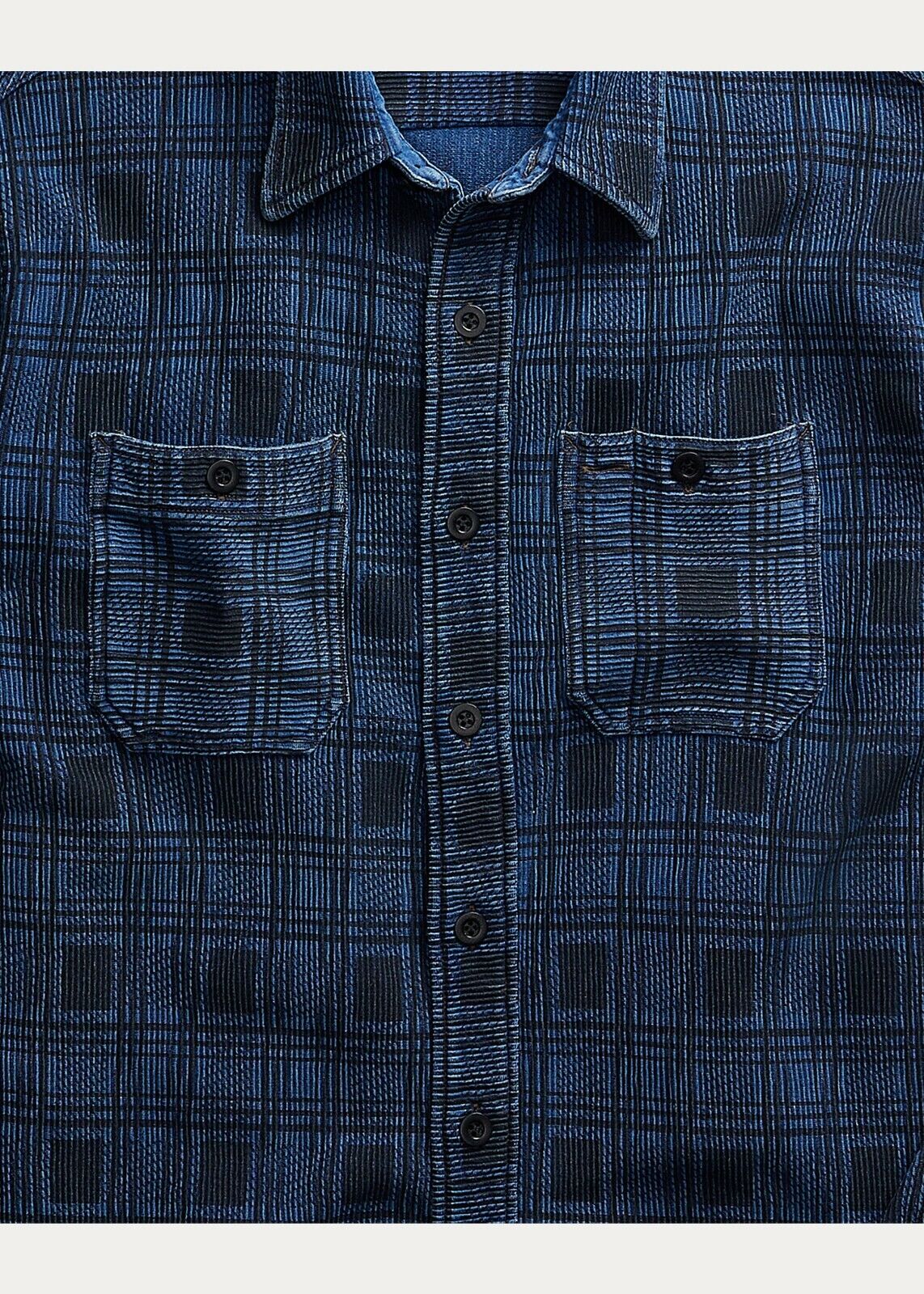 RRL Ralph Lauren Rotary Ottoman Check Plaid Blue Indigo Workshirt Men's L Large