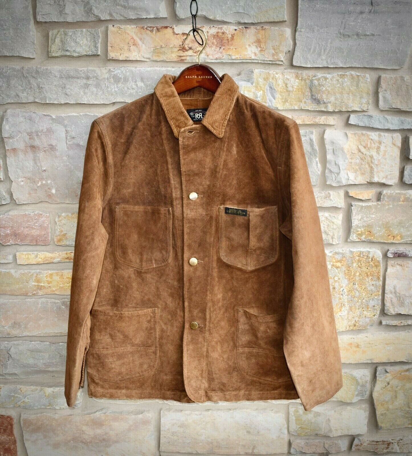 Two chest patch pockets. "RRL" label at the left chest pocket. Two front waist patch pockets.