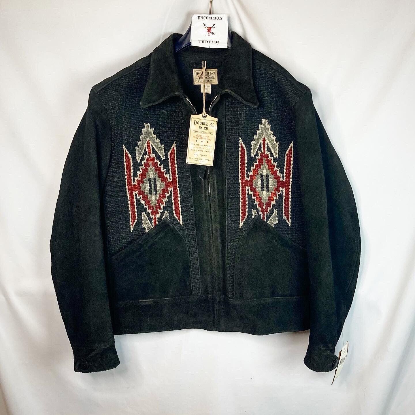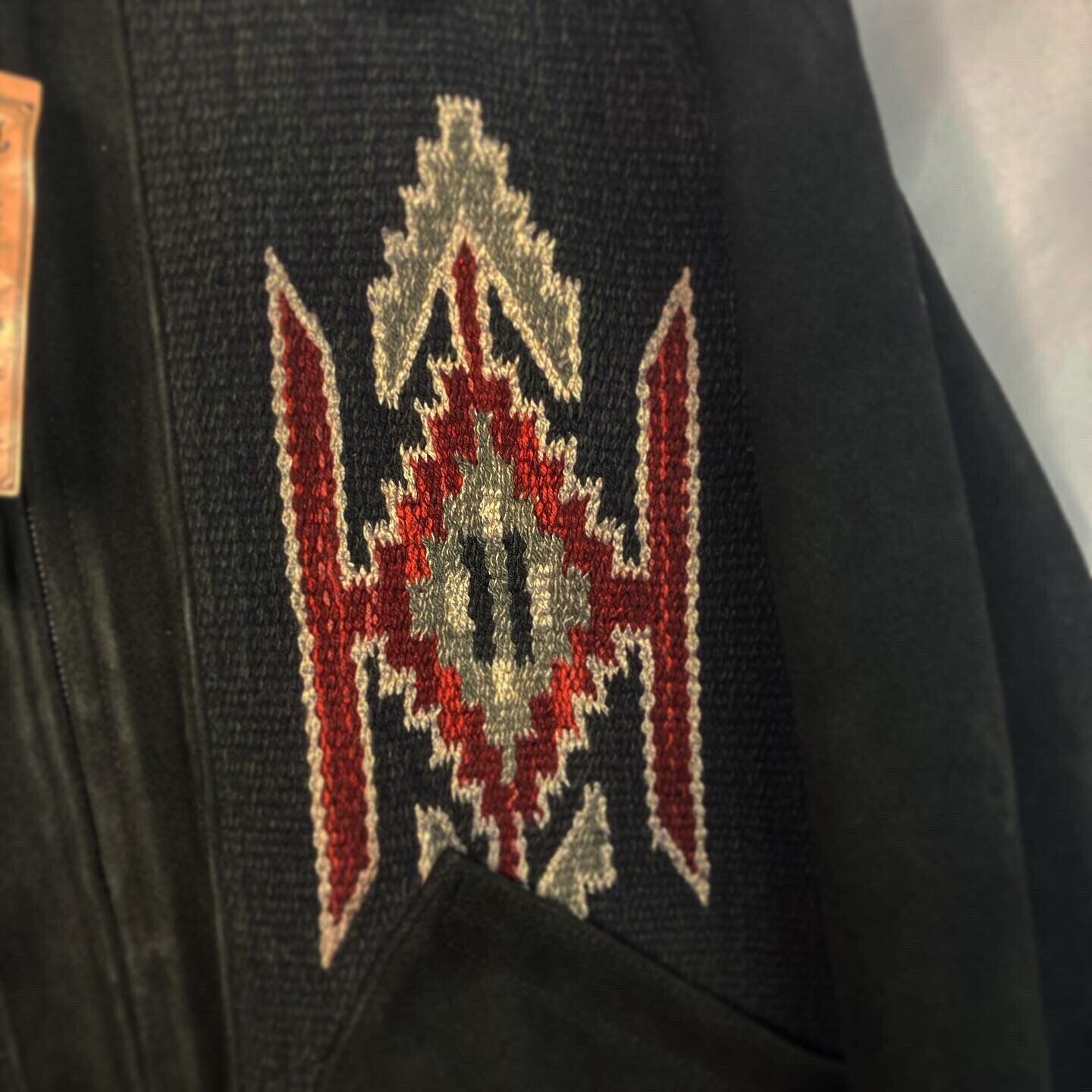 RRL Ralph Lauren Southwestern Leather Jacket Suede Black Woven Men's L Large