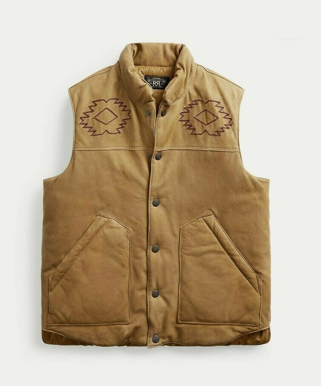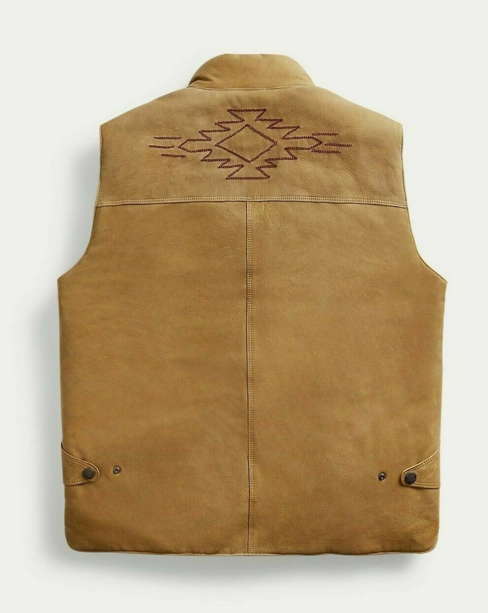 RRL Ralph Lauren Suede Western Tan Puffer Coat Vest Jacket Tan Men's Small S