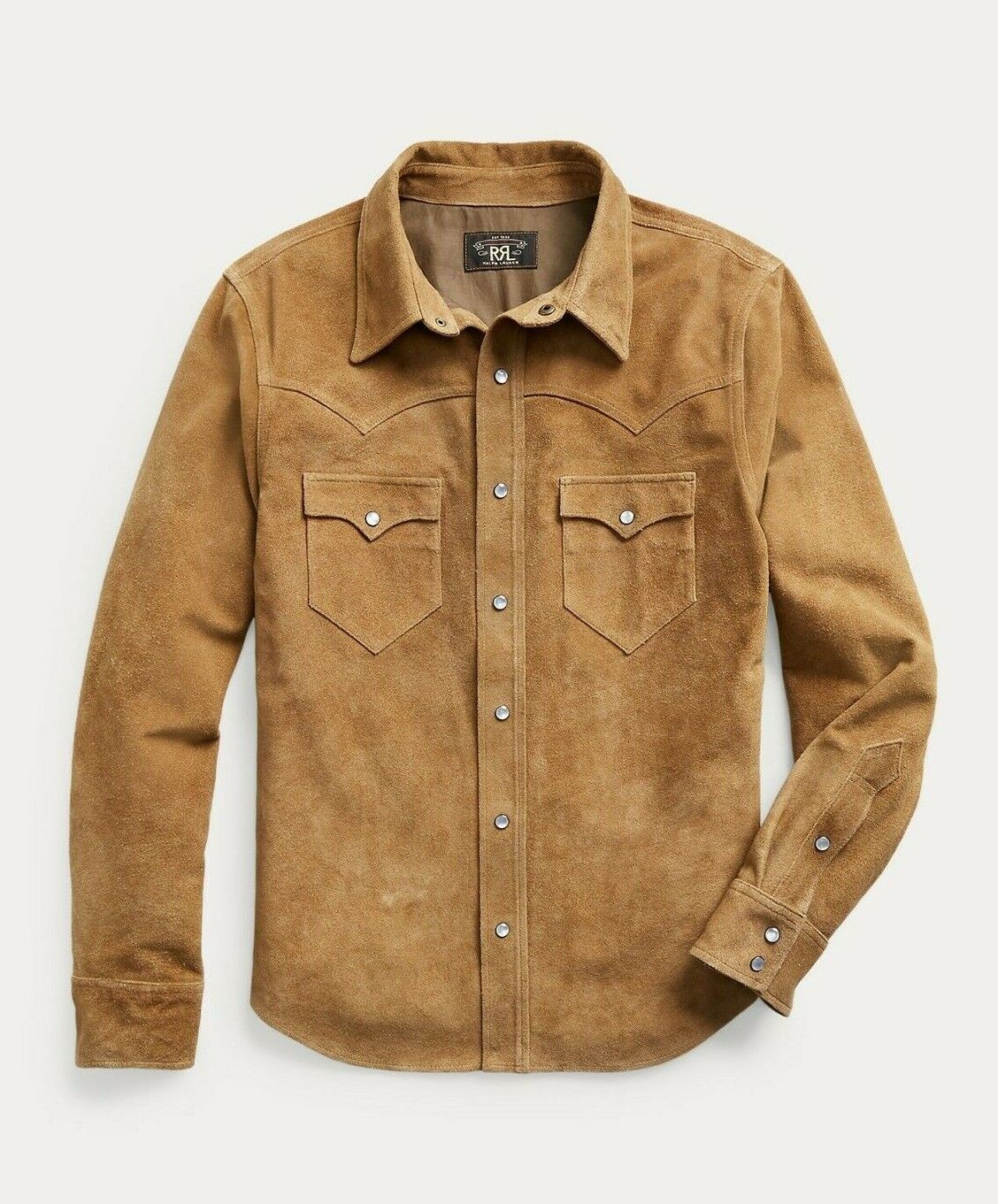 RRL Ralph Lauren Tan Suede Western Leather Snap Jacket Overshirt Men's Large L