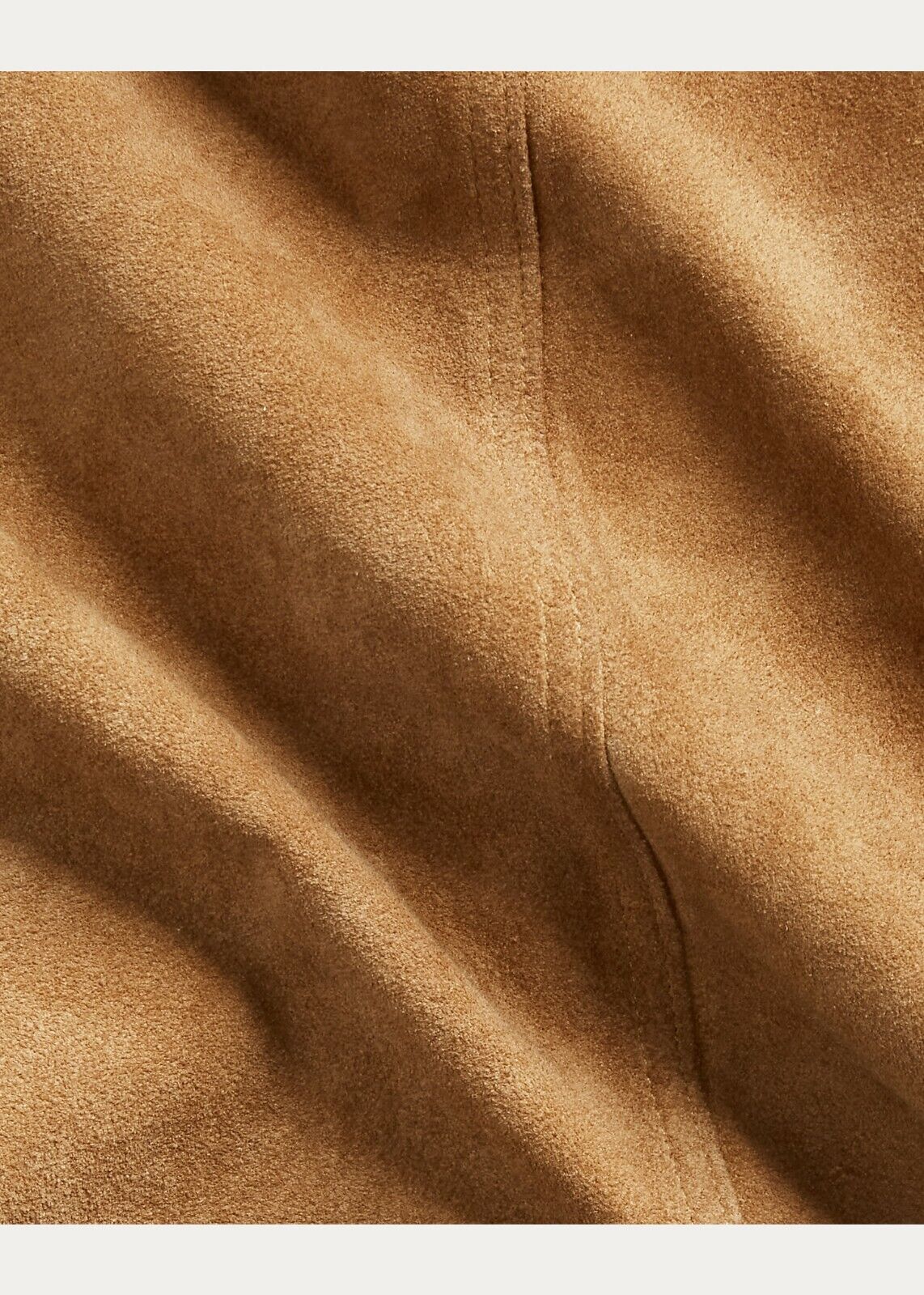 Shirt jacket made from supple suede. Western-style front and back yokes.Point collar. Snapped placket. Western-style front and back yokes.